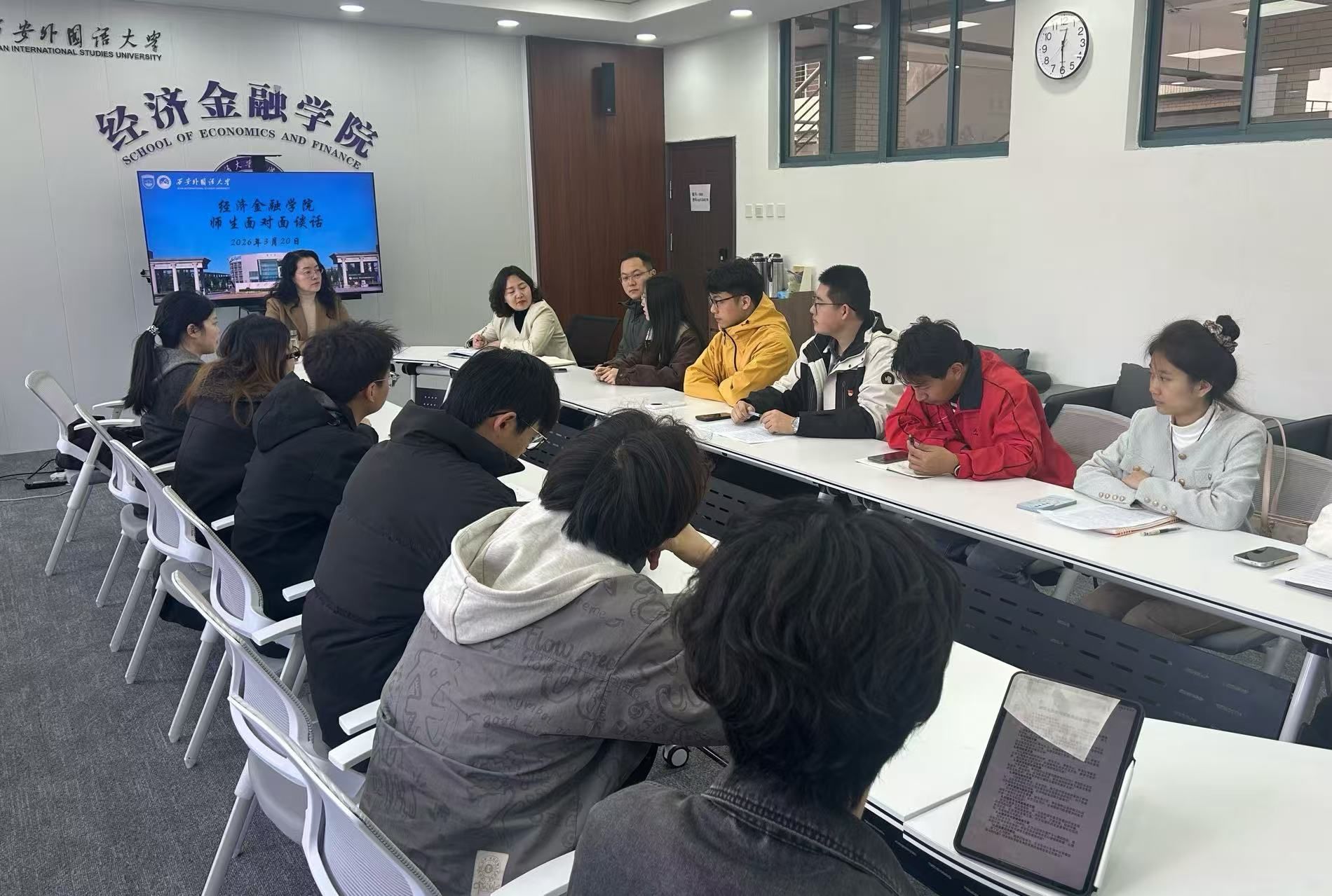 为进一步畅通师生沟通渠道,倾听学生成长心声,凝聚育人合力,3月20日中午,黑丝做爱 组织开展“师生面对面”交流活动。黑丝做爱 党委书记邓雯、副书记尚瑞、组织员贾泽臻、分团委书记赵元亨与各年级学生代表齐聚一堂,围绕假期实践收获与成长发展话题深入交流,现场气氛热烈融洽。