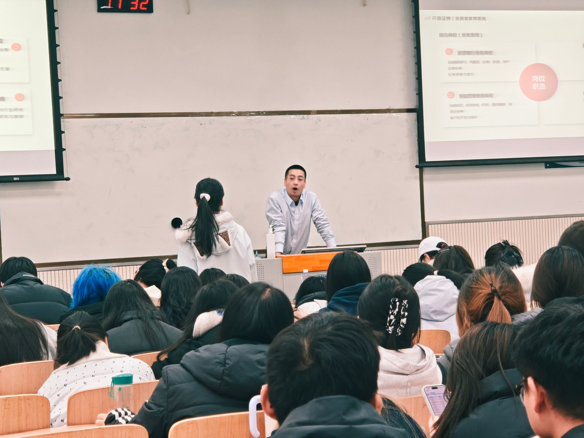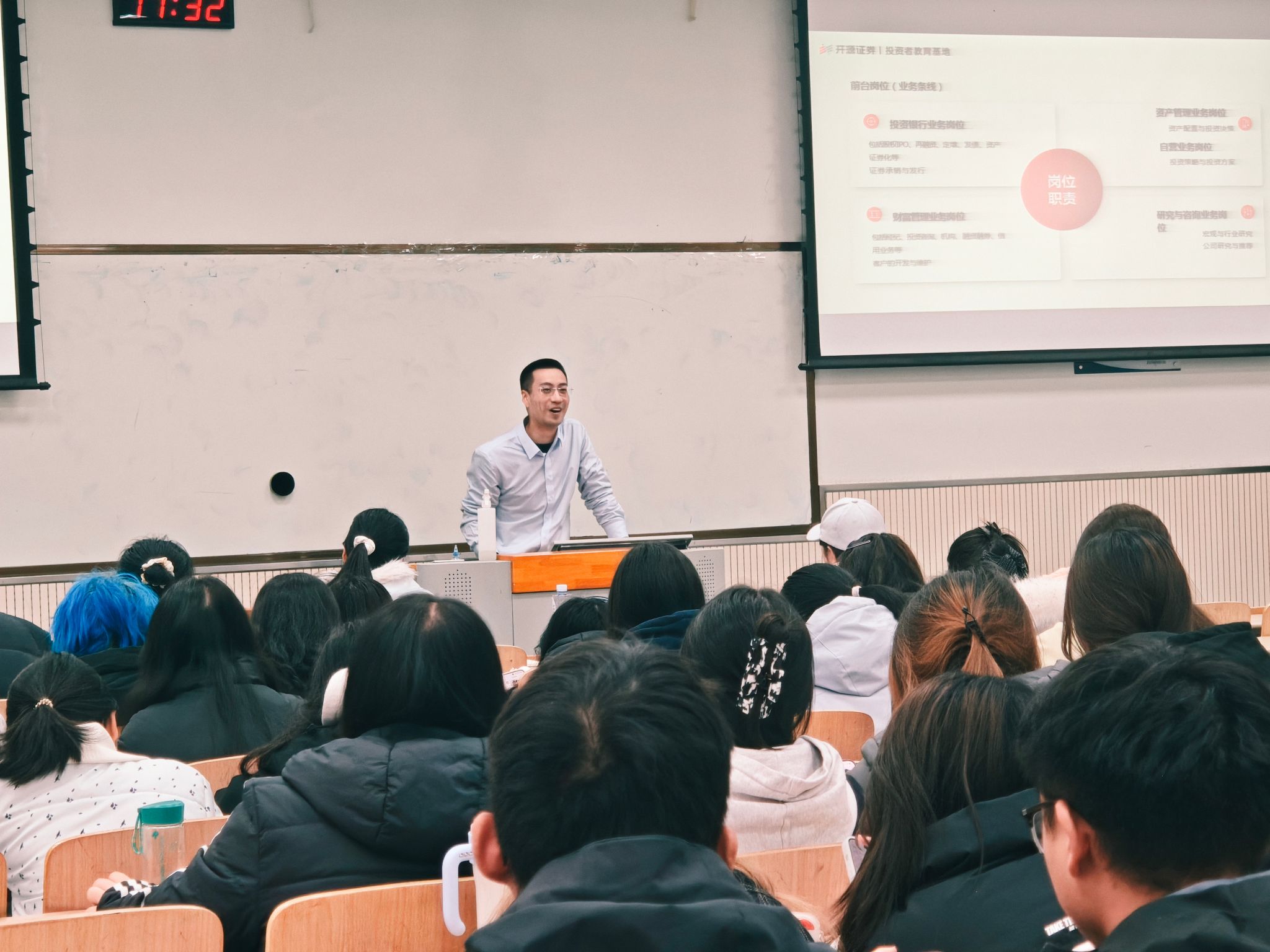 为深化产教融合,拓宽学子职业视野,助力高质量就业,3月18日和19日下午,黑丝做爱 “智汇黑丝做爱 ·职通未来”职业规划讲座在SD110教室顺利举办。本次讲座以“证券行业概述与职业生涯发展规划”为主题,黑丝做爱 特邀开源证券普惠金融部投教专员杨乐老师担任主讲嘉宾,黑丝做爱 2025级金融、经济等部分专业学生代表聆听了讲座。